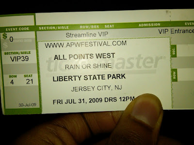 Wow. So I told you all I would be mingling throughout All Points West this weekend. And I was... Sort of. For those of you in the Tri-State area it was a wet weather weekend up here. But I managed to make an appearance Friday night as you can see from the snapshot of the ticket above.